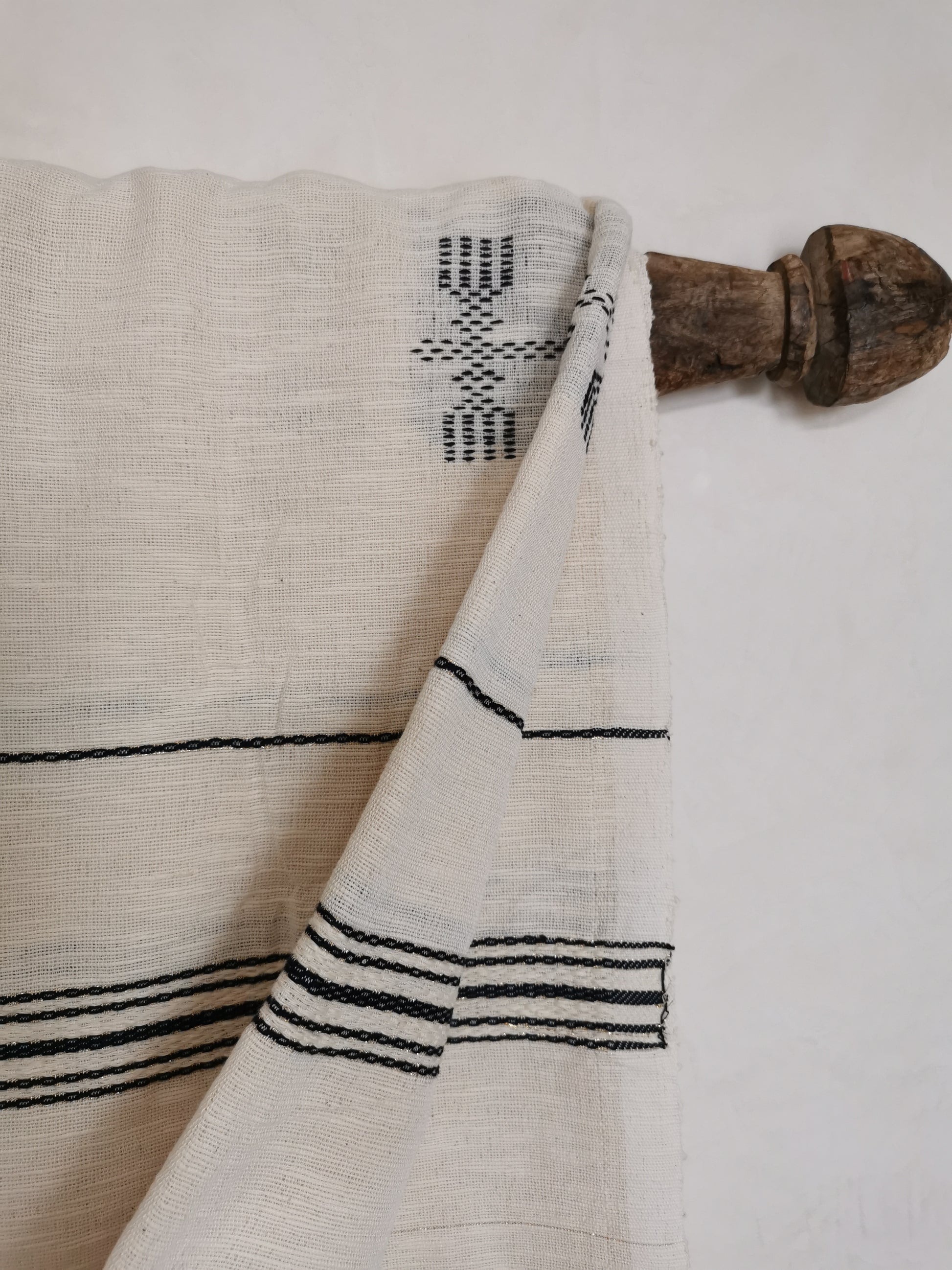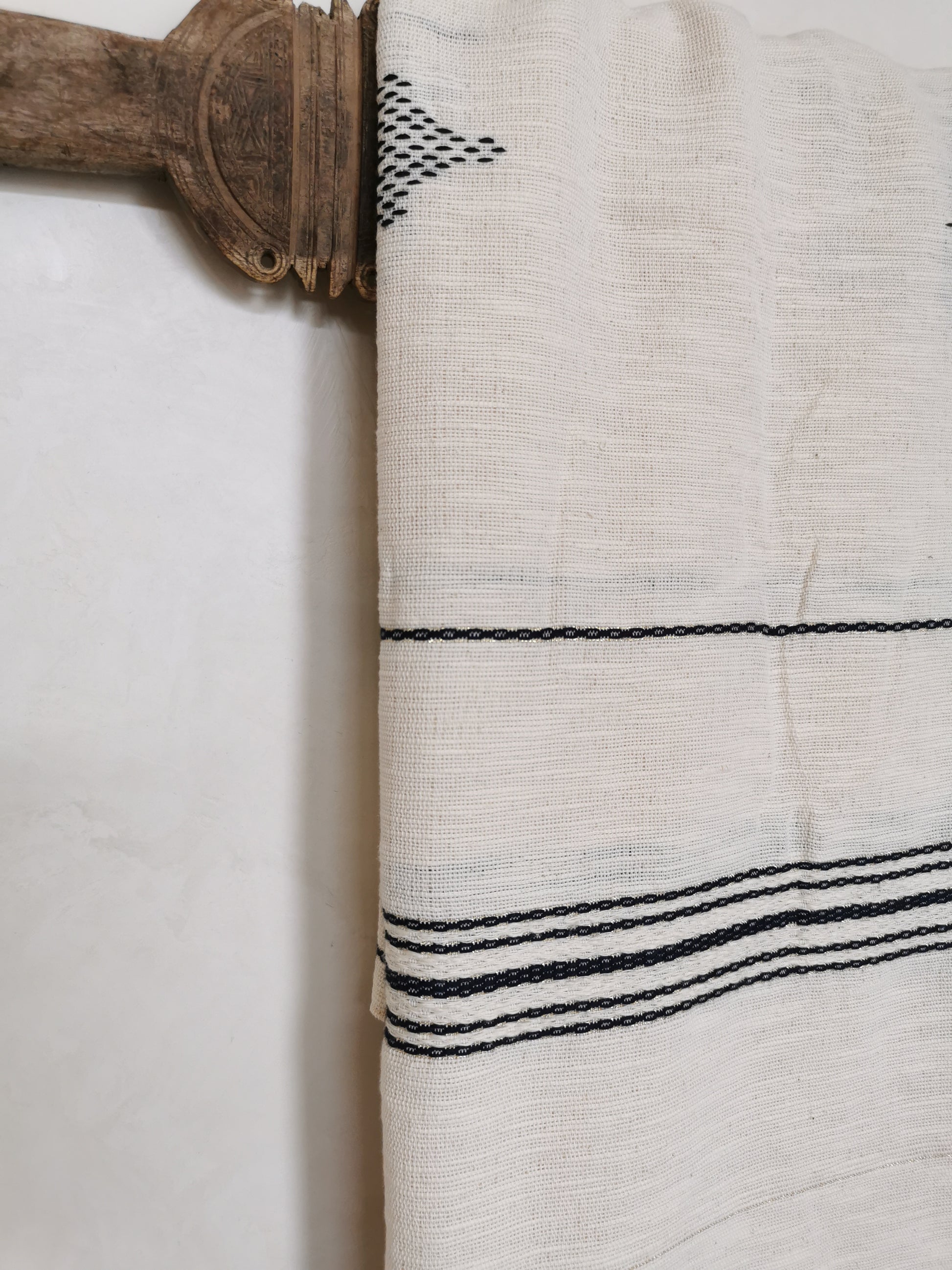 Infos: Techniques de tissage traditionnel et bord en frange fait main.