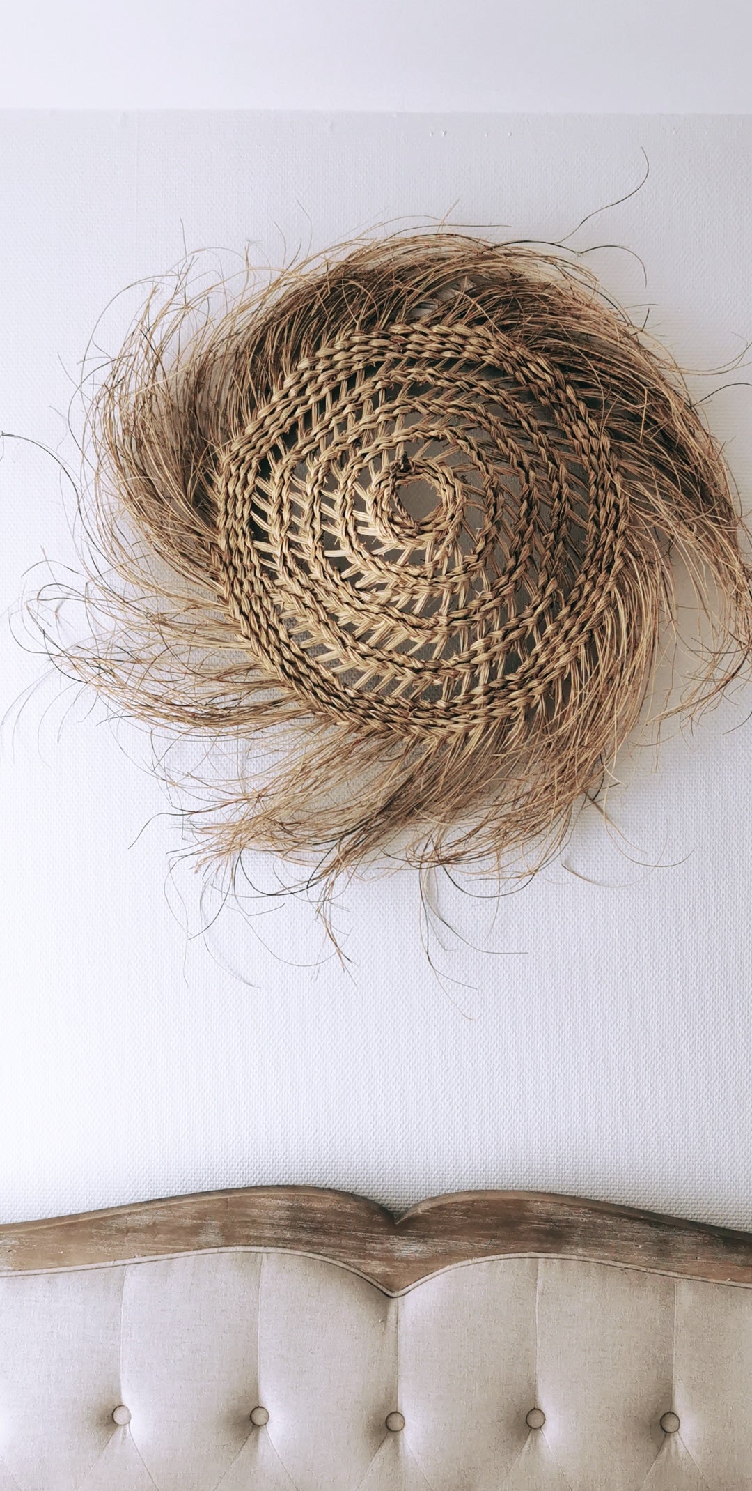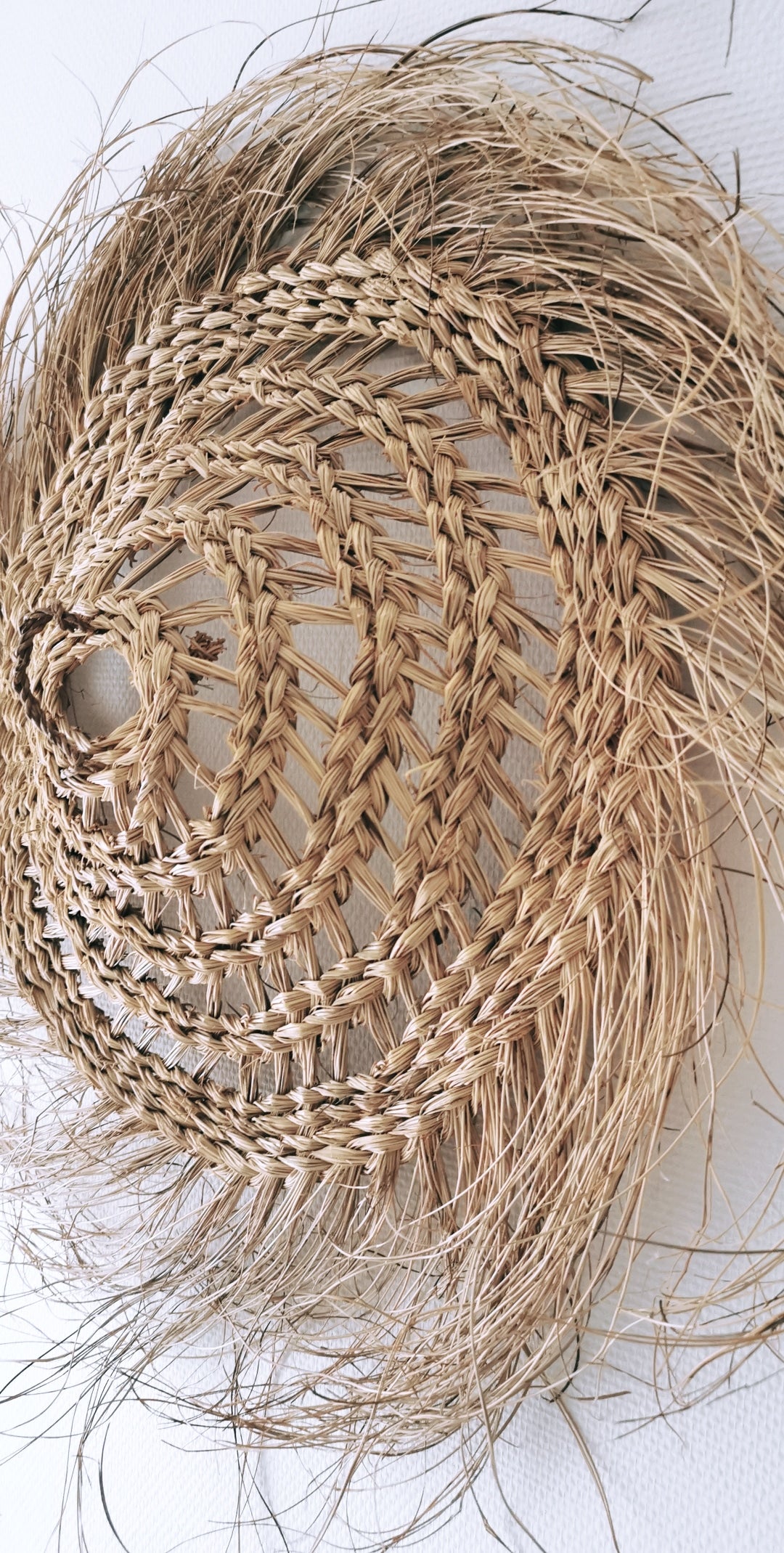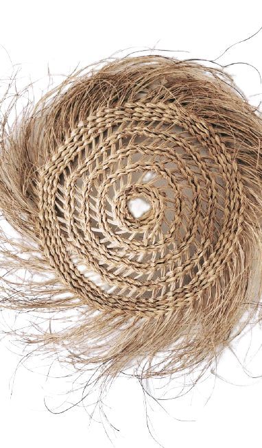 Abat-jour en feuille de palmier, tressé a la main.